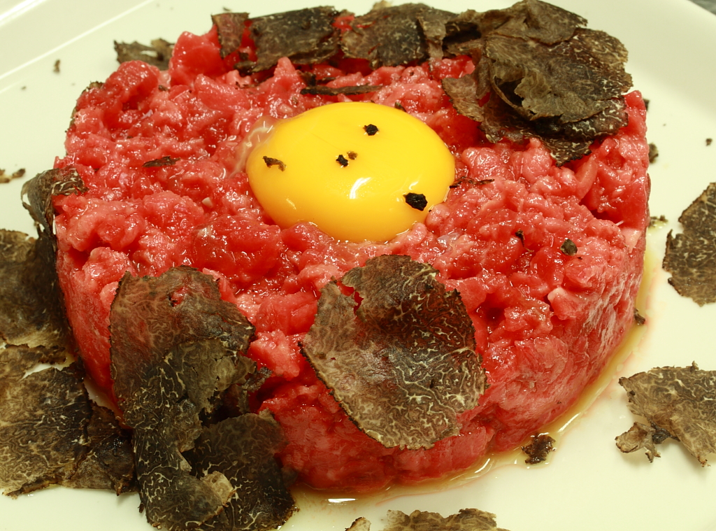 Filetto di manzo su canapé di pan brioche con scaloppa di fegato grasso d'oca, fondo bruno al Madeira e tartufo nero pregiato