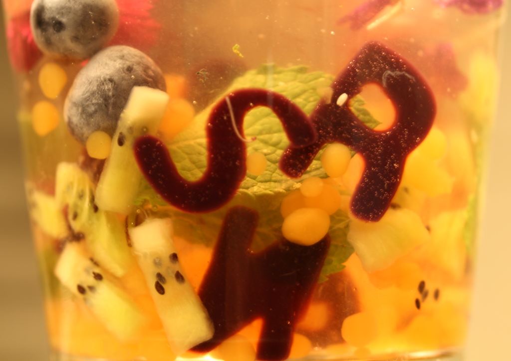 Succo fresco di uva fragola con spuma di limone