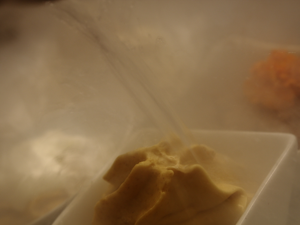 Gelato alla crema E Rum Havana 7 anni con croccante di nocciole mantecato al momento con azoto liquido