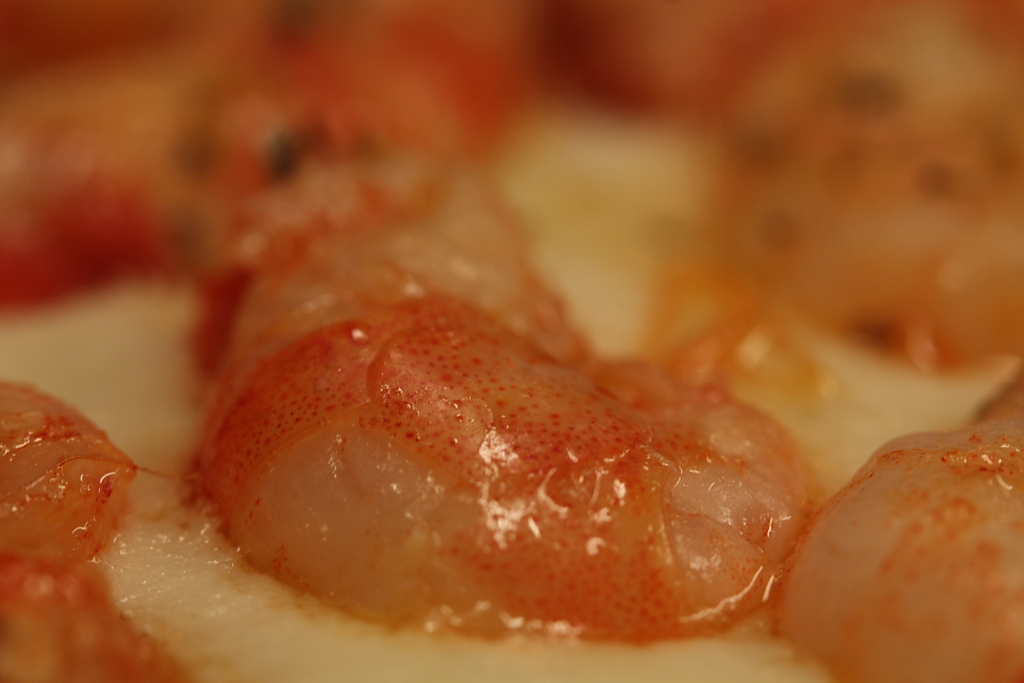 Spuma di patate con gamberetti appena scottati con la loro bisque al naturale